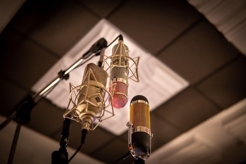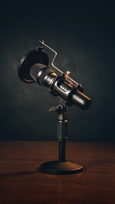 Unlike condenser microphones‚ dynamic mics don’t require external power. This self-powered nature contributes to their reliability and simplicity. However‚ they generally have a slightly lower sensitivity and a less extended frequency response compared to condenser types. The design prioritizes durability over nuanced audio capture.